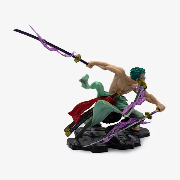 - این فیگور اکشن فوقالعاده از زورو ، رو ببین که در حال استفاده از تکنیک سهشمشیره و در اوج مبارزهست .
